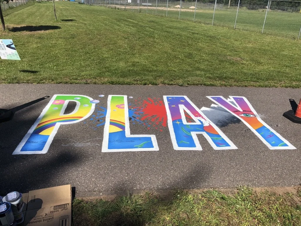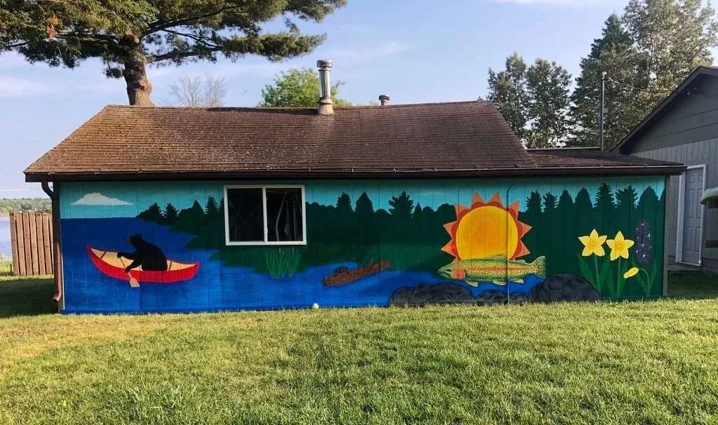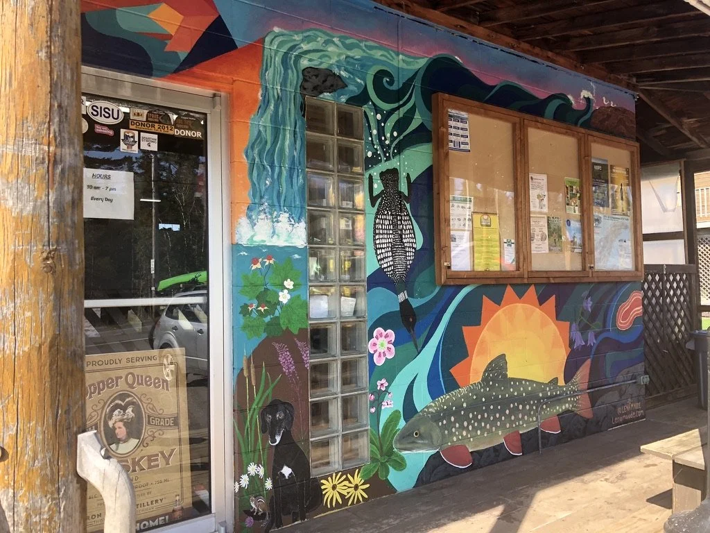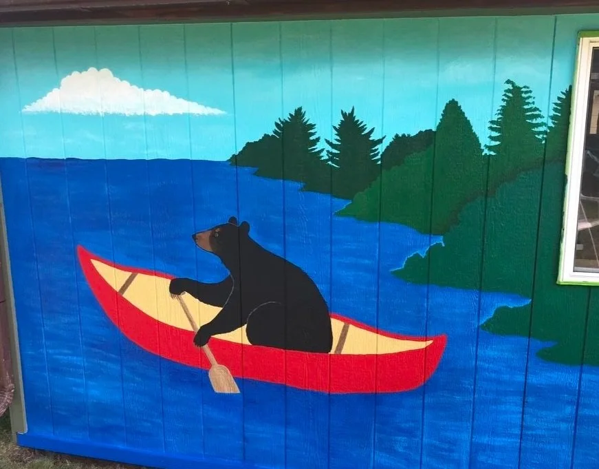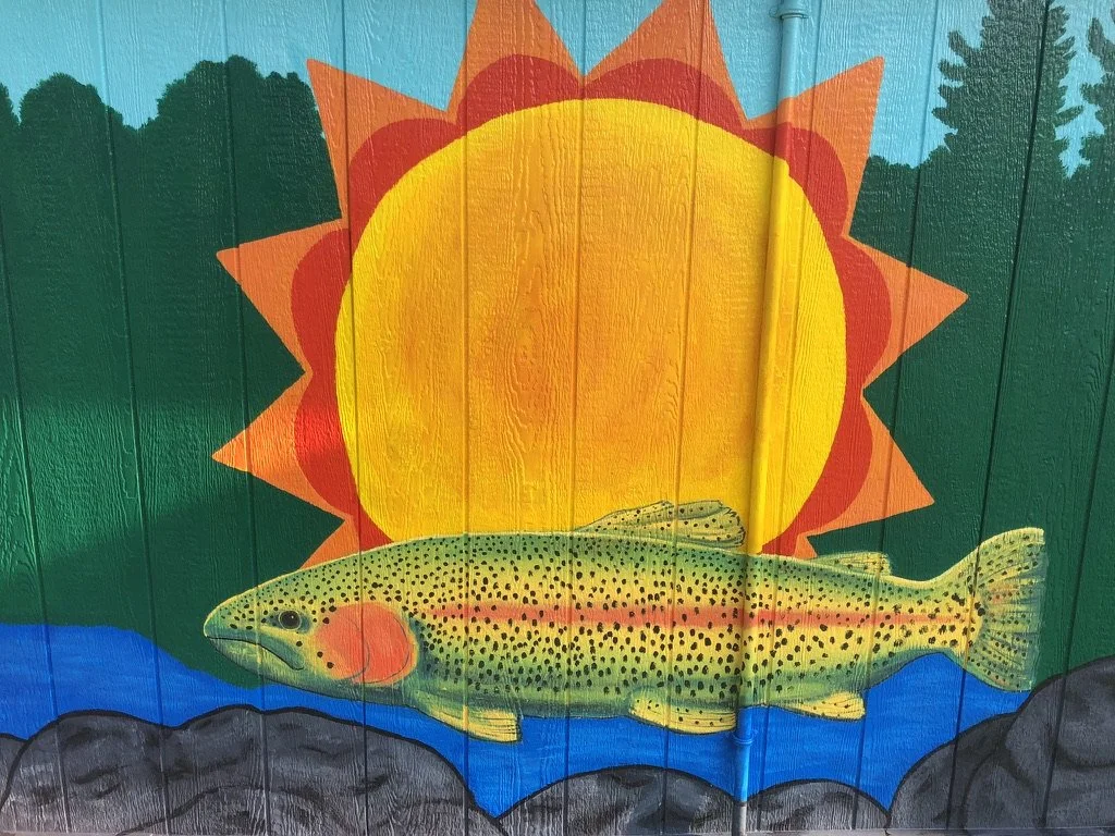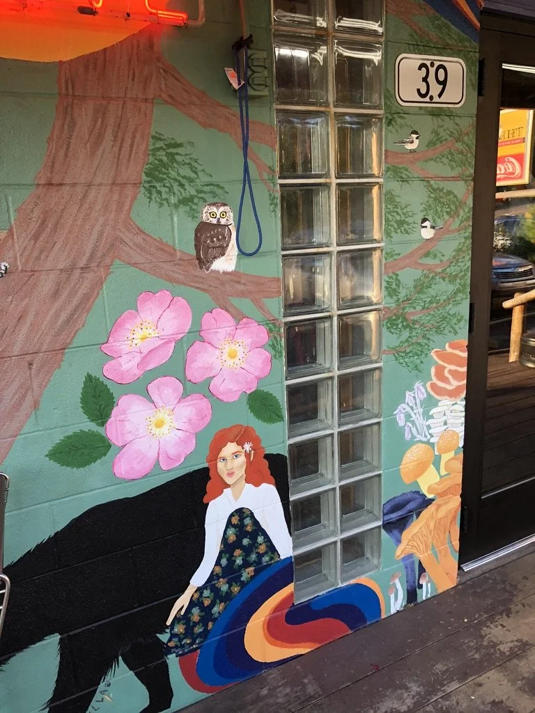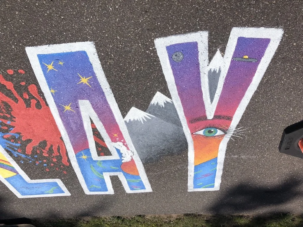 First I use chalk to draw the design on the wall. As the mural was coming to life, we opted for some changes in flowers (to have more familial meaning), adding a turtle, and changing the fish surrounds.